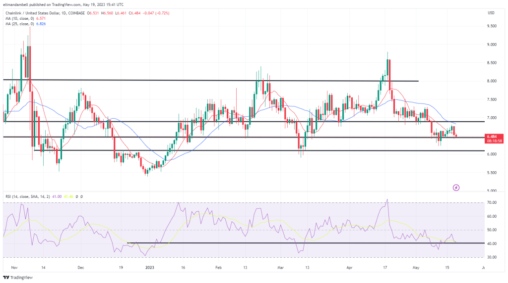 Looking at the chart, today’s slippage pushed LINK close to a support point of its own at $6.45.