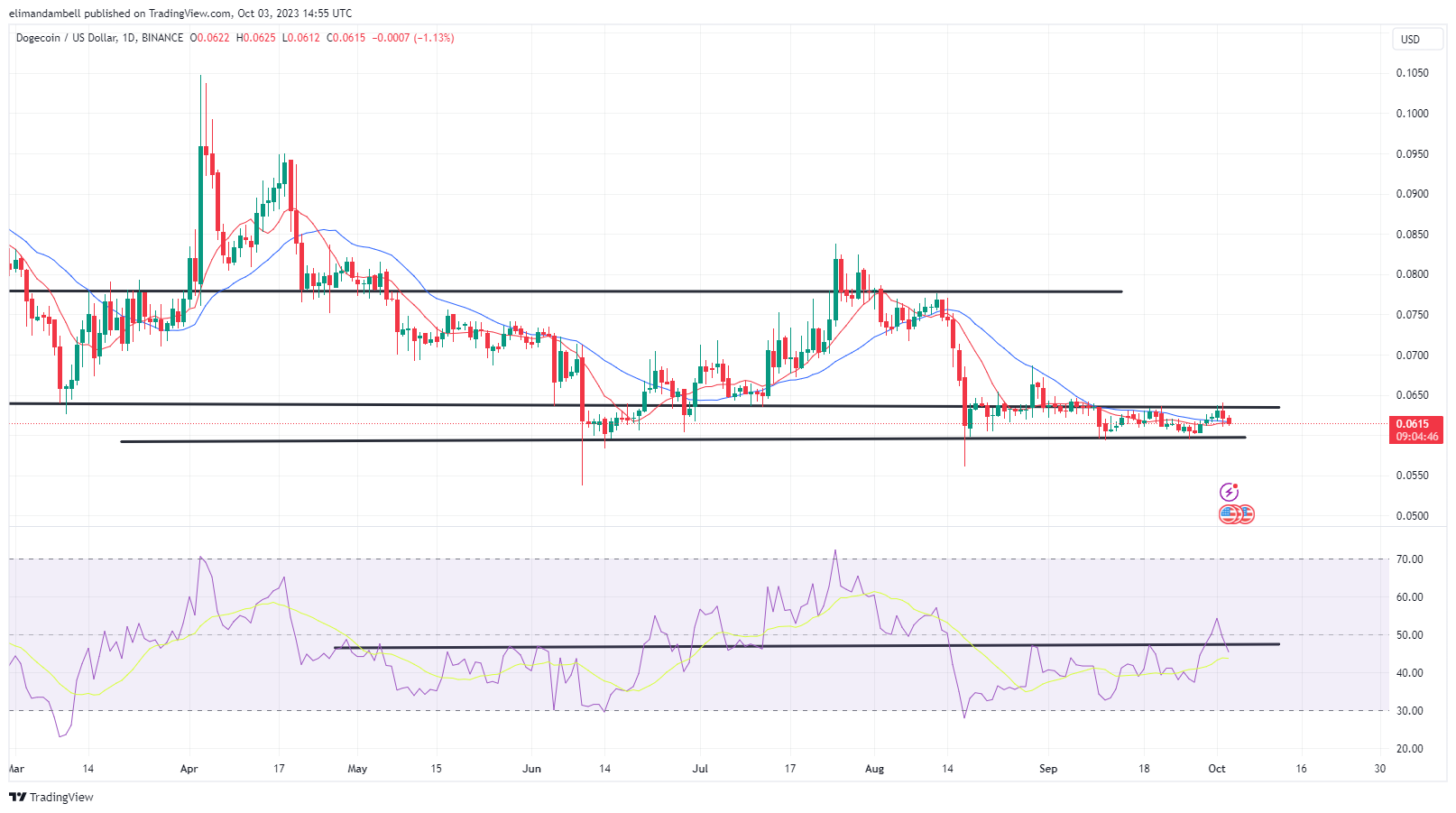 DOGE/USD dropped to a low of $0.06163 earlier in the day, following a high of $0.06329 the day prior.