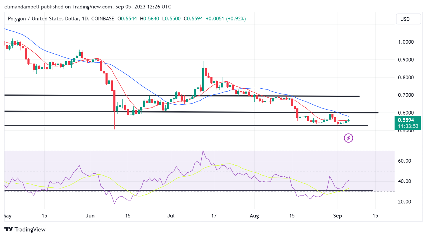 MATIC/USD peaked at $0.5634 on Tuesday, which comes following a low of $0.5406 to start the week.