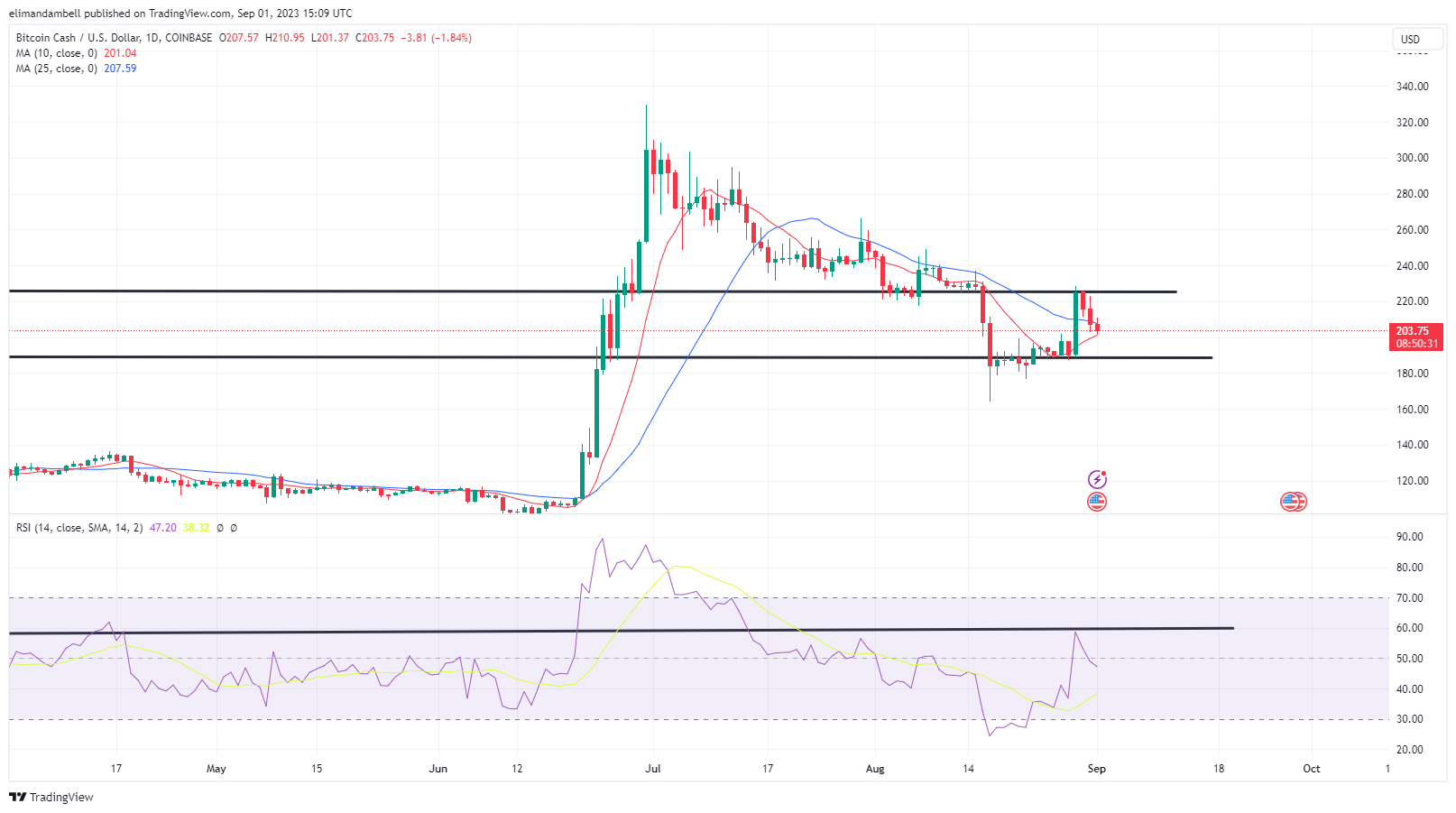 After a recent three-day losing streak, BCH/USD dropped to an intraday low of $204.28 on Friday.