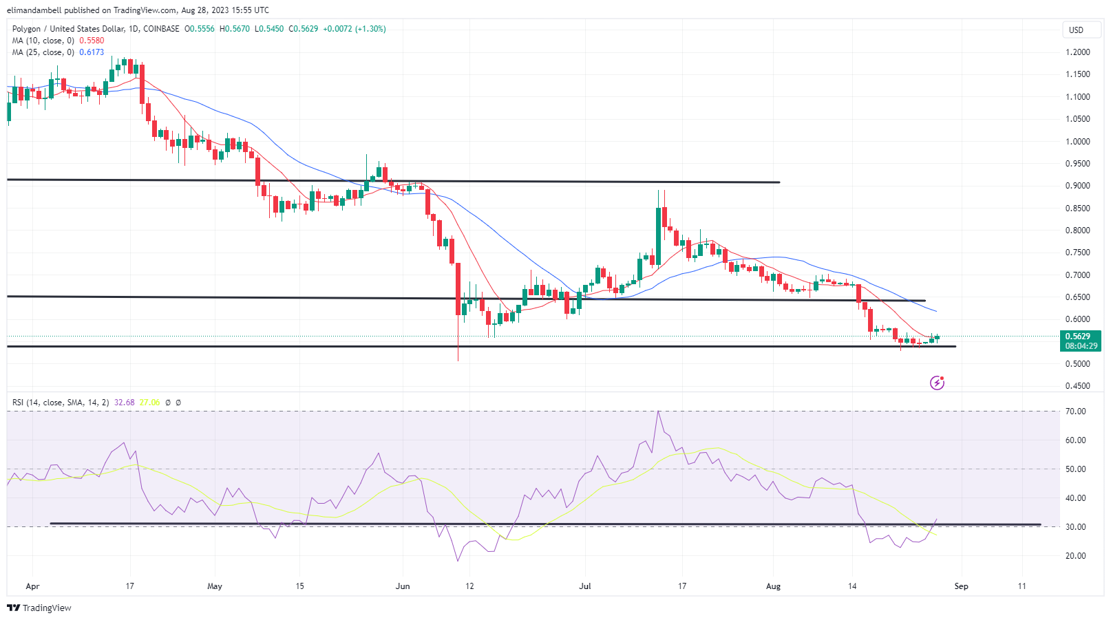 After trading at a low of $0.5479 on Sunday, MATIC/USD surged to an intraday peak of $0.5624 earlier today.