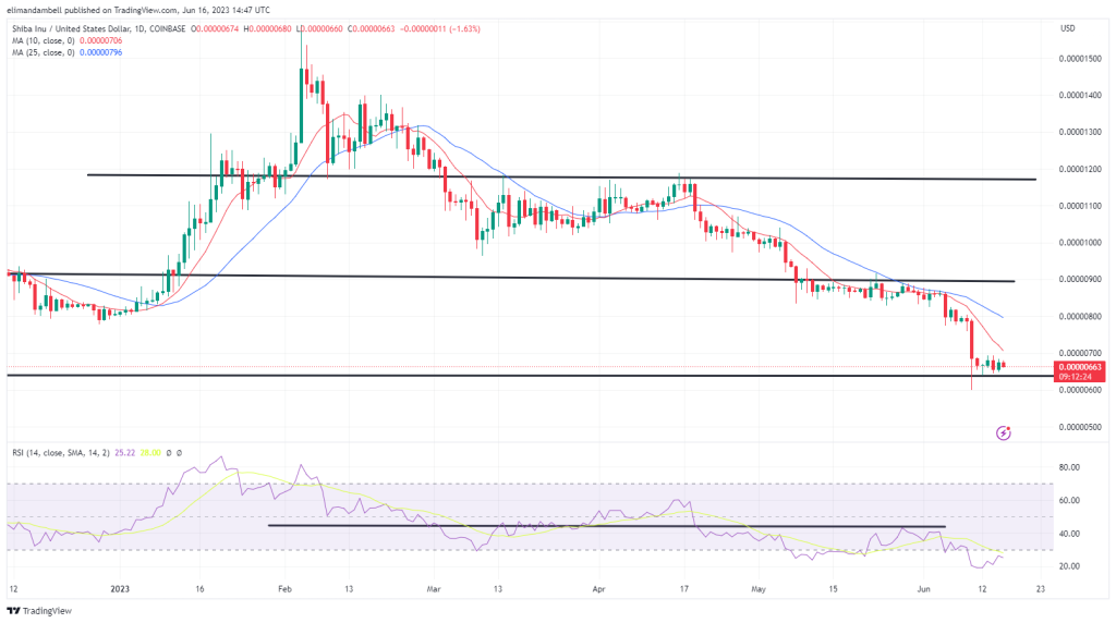 Looking at the chart, the sell-off has eased, which came as SHIB began consolidating around a key support point of $0.00000635.