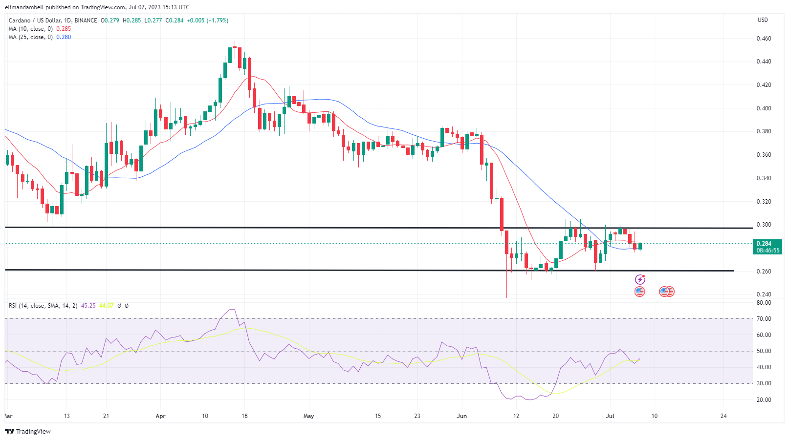 After falling to a low of $0.278 on Thursday, ADA/USD jumped to a high of $0.2874 earlier in the day.