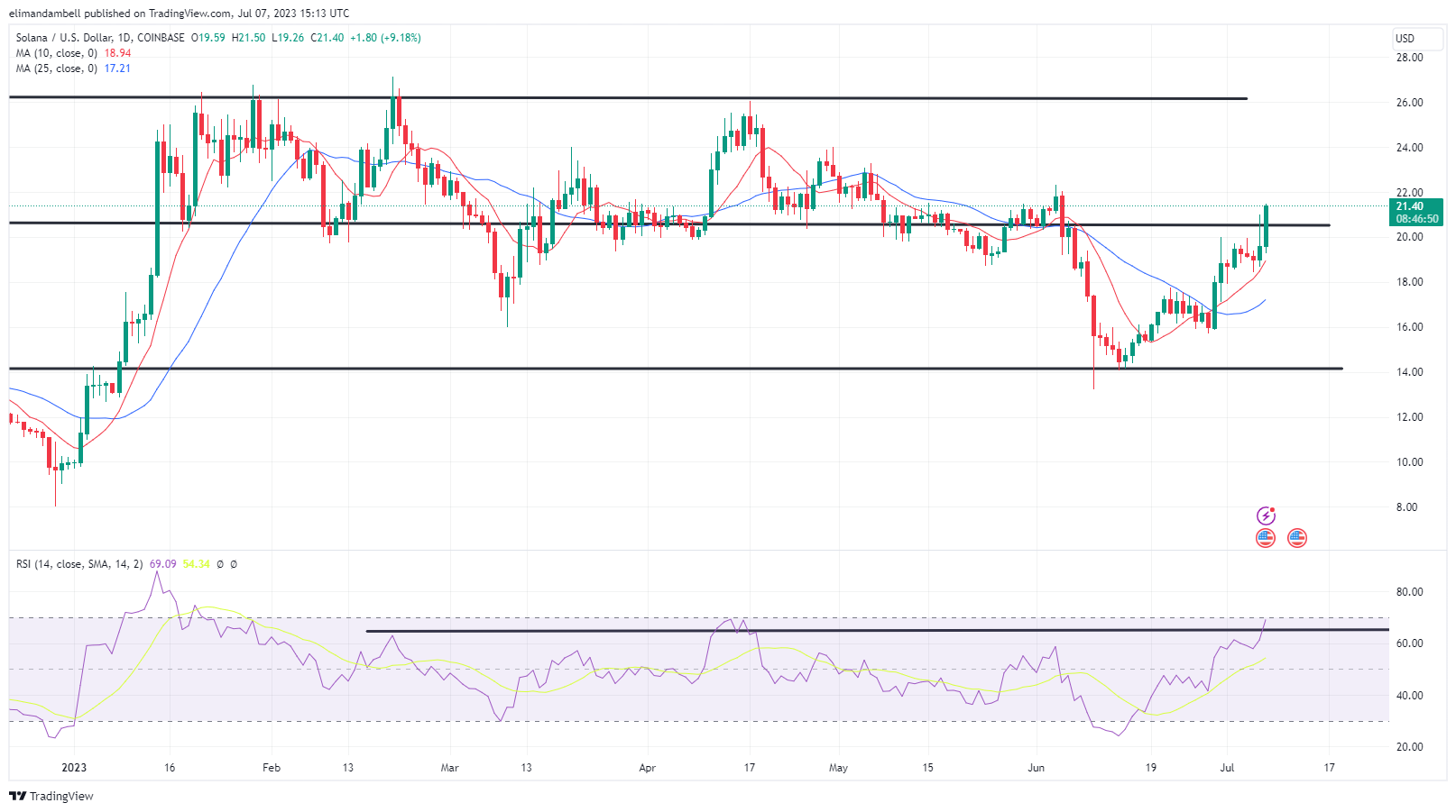 As a result of the surge, solana hit its strongest point since June 5, when the price peaked at $22.06