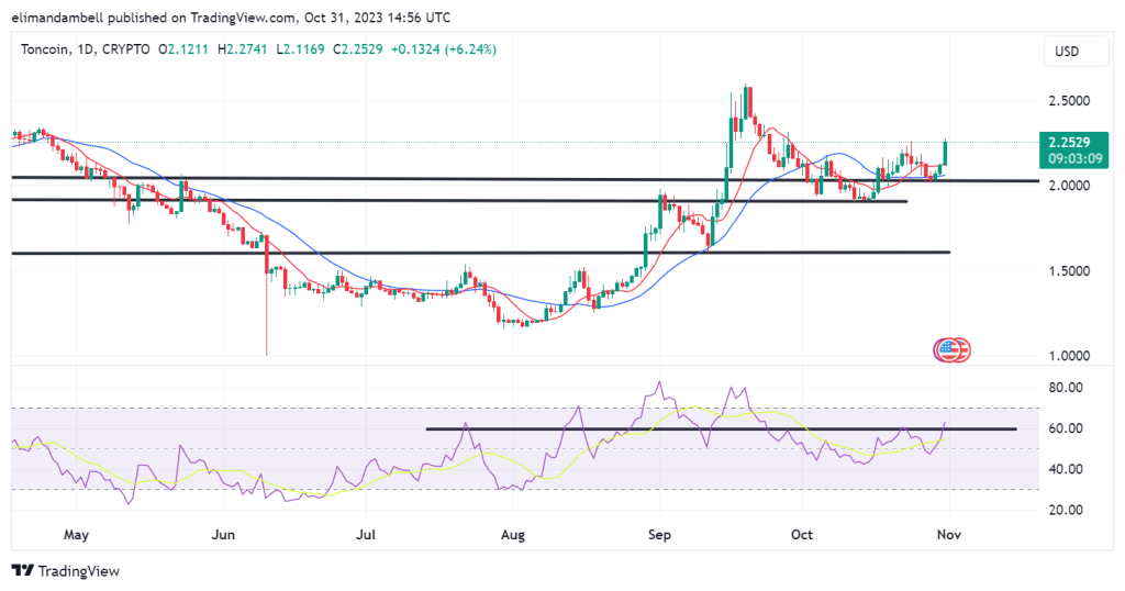 Owing to the move, toncoin rose to its highest point since September 28, when price was above $2.30.