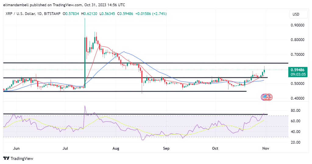 Today’s move saw XRP climb for a third straight day, pushing the token close to a ceiling of $0.6400.