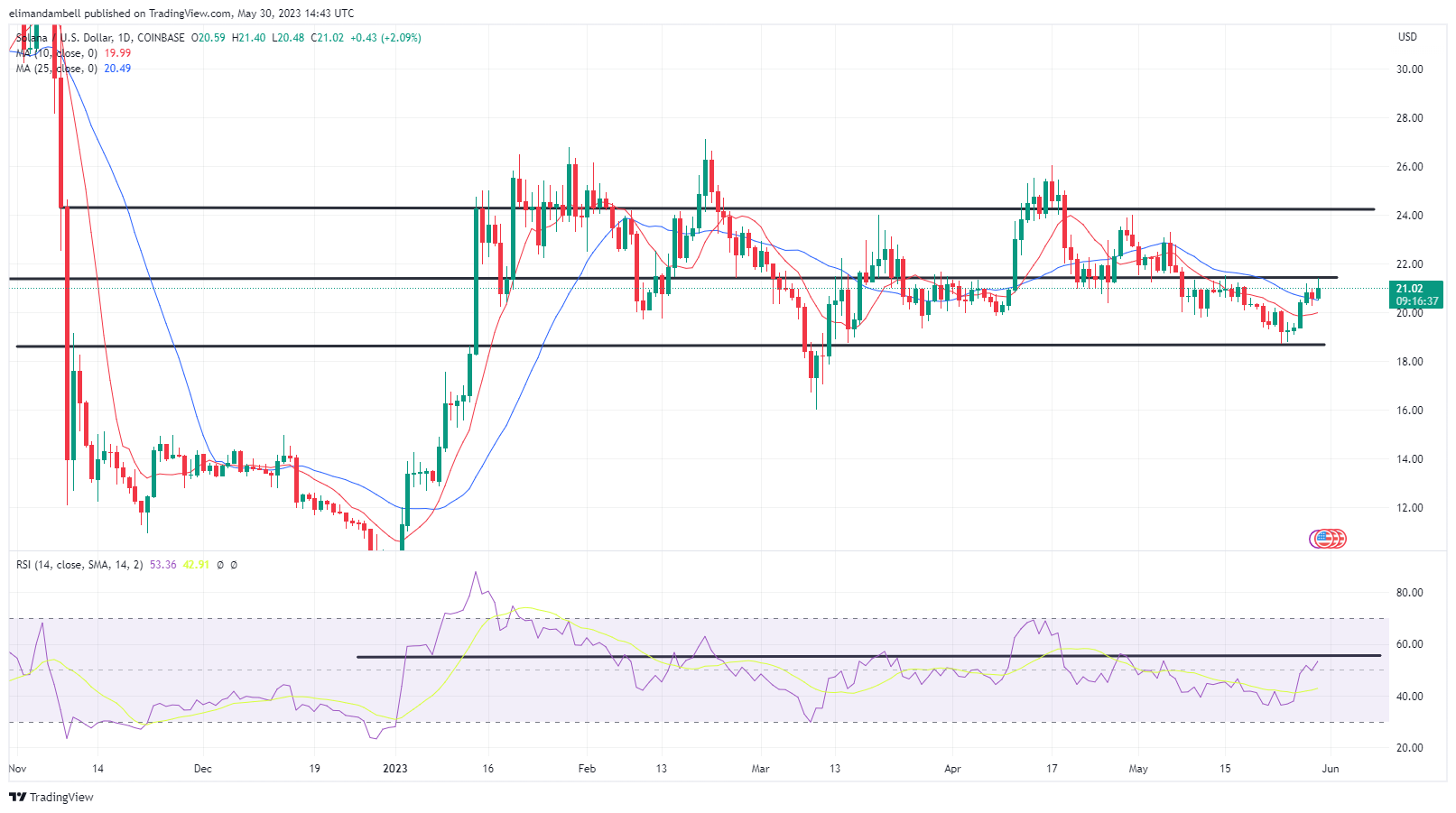 Solana ( SOL) was also in the green, as it moved close to a key resistance level of $21.50.