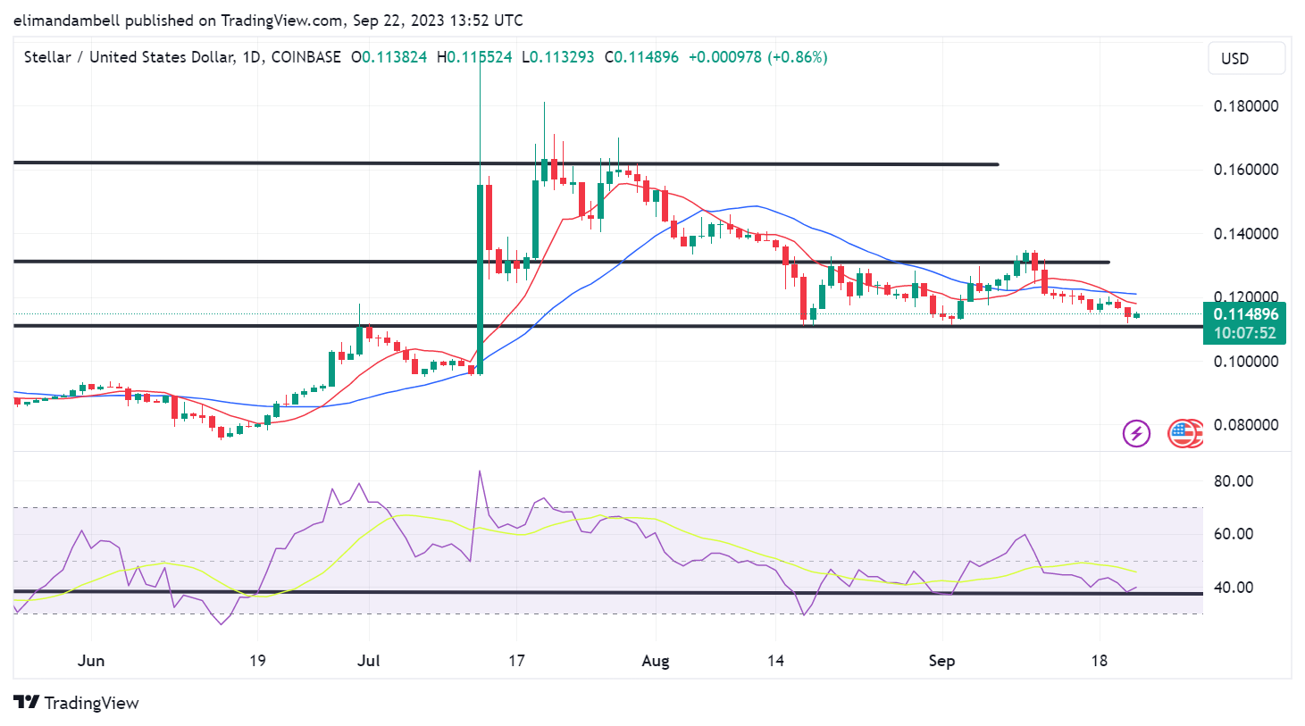 XLM/USD peaked at $0.1154 earlier in the day, which comes less than 24 hours after falling to a low of $0.1122.