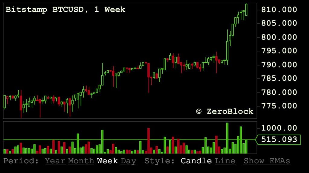 Bitcoin Blows Past $808 With No Sign of Heartbreak – News Bitcoin News