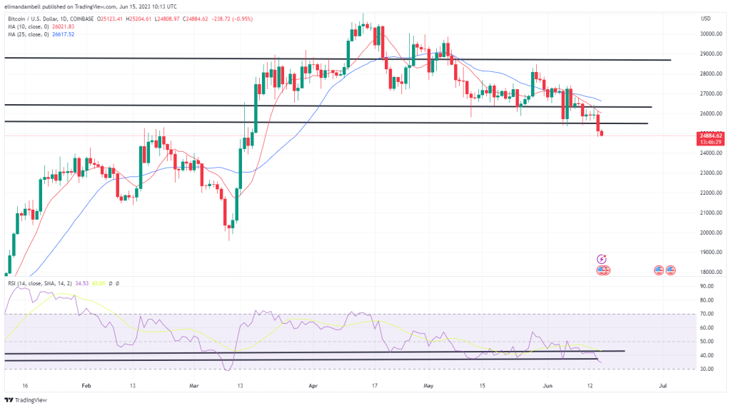 Bitcoin, Ethereum Technical Analysis: BTC Moves Below $25,000 Following Fed Meeting