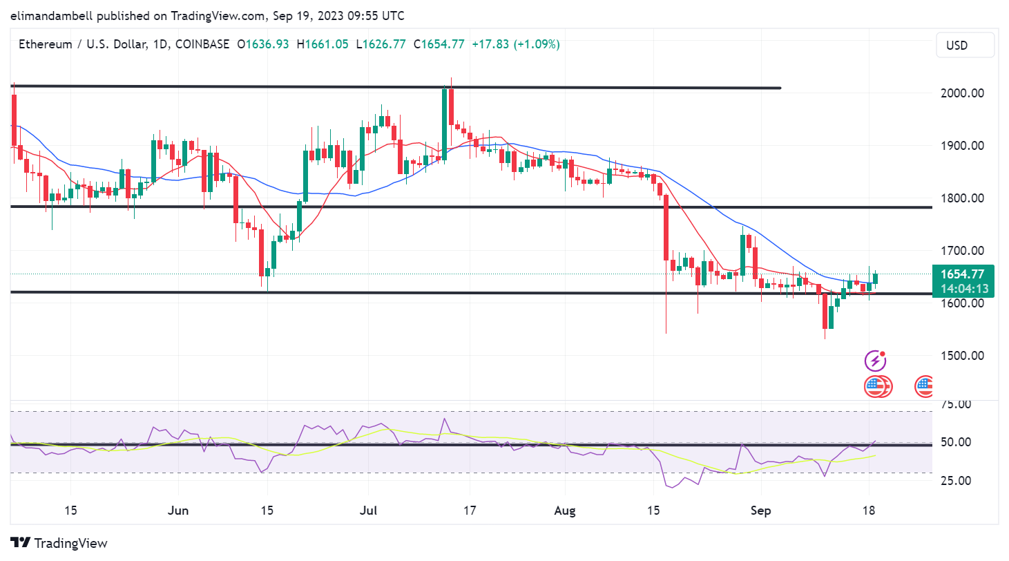 ETH/USD peaked at $1,669.02 on Tuesday, which follows up from Monday’s low at the $1,628.41 mark.
