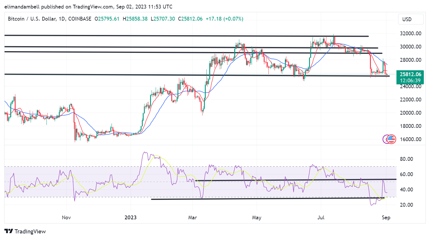 At the time of writing, BTC is now trading at $25,818.66, with a target of $26,000 likely to be present throughout the weekend.