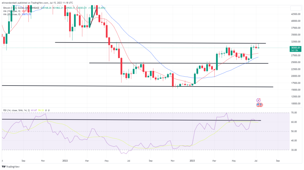 Two weeks into July and bitcoin has risen to a fourteen-month high, as cryptocurrency markets reacted to the Ripple Labs’ ruling. XRP was partially ruled to not be a security by U.S. judge Analisa Torres, after a lawsuit from the Security and Exchange Commission (SEC). However, what does this mean for price action for the remainder of the month?