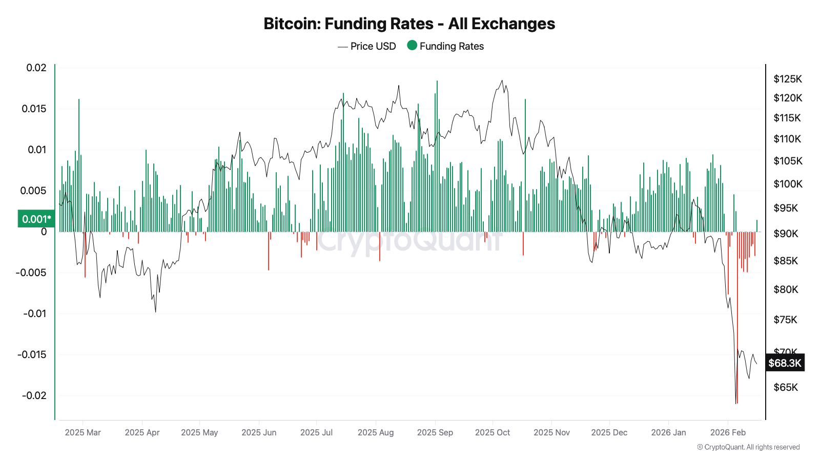 Bitcoin is trading just above $68,000 on Feb. 16, after fluctuating between roughly $60,000 and $71,000 in recent weeks, demonstrating resilience even as sentiment in derivatives markets turns sharply negative.