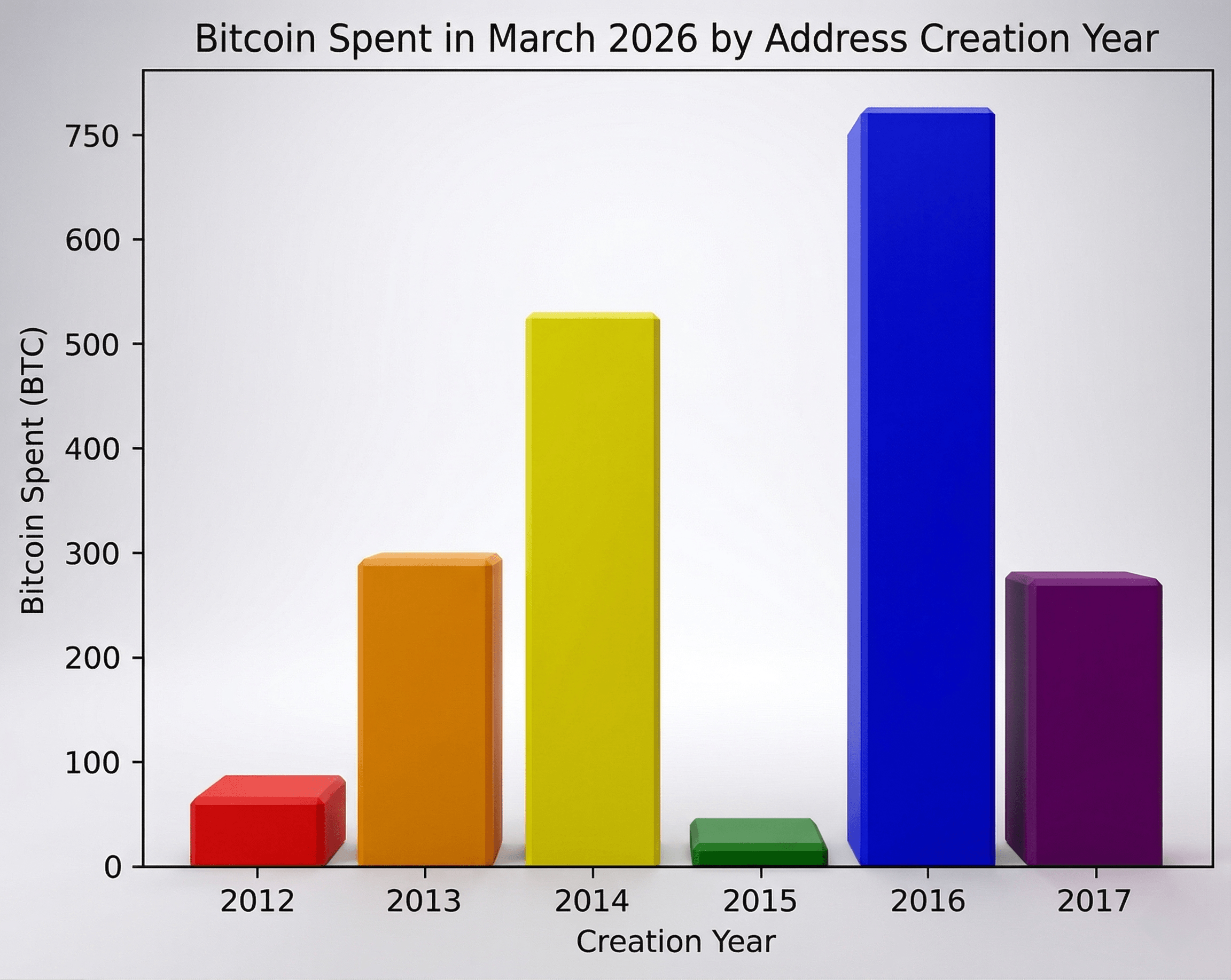 ২০১২ সালে তৈরি চারটি ওয়ালেট মার্চে 64.71410645 BTC খরচ করেছে, এবং ২০১৫-যুগের একটি ঠিকানা 20.00010547 BTC-এর জন্য দায়ী ছিল। ২০১২ কহর্টের কার্যকলাপ আলাদাভাবে উল্লেখযোগ্য। ওই ঠিকানাগুলোর কয়েন বিটকয়েনের প্রাথমিকতম বছরগুলো টিকে ছিল, যখন কোনো উল্লেখযোগ্য এক্সচেঞ্জ অবকাঠামোই বিদ্যমান ছিল না।