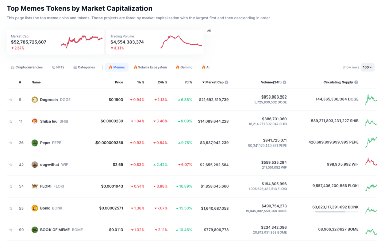 With a combined value of almost $53 billion and $4.5 billion in spot volumes in the past day, the meme coin craze appears to be back in full flow.