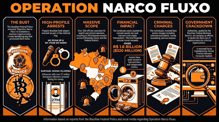 - Operation Narco Fluxo busted a $320M crypto ring across 8 states, seizing assets to possibly compensate victims next.