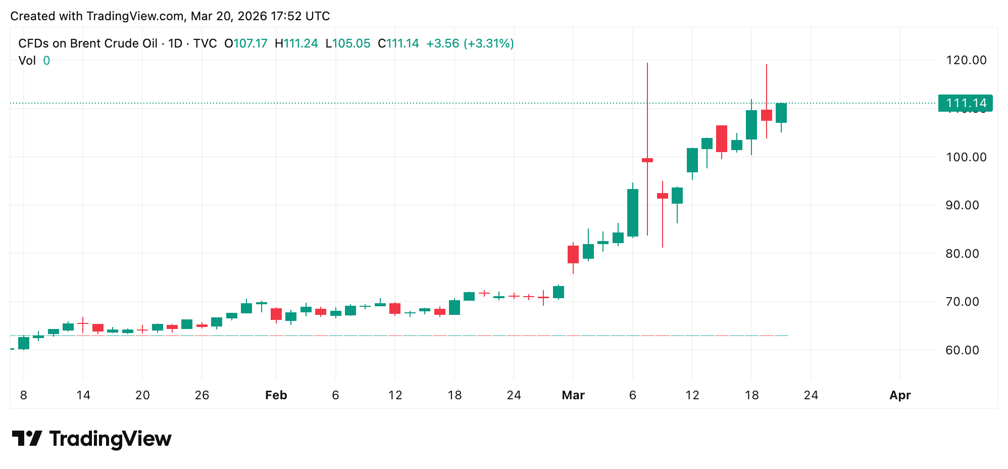 The result is a wide divergence between physical and financial markets. While Dubai crude pushed past $170, Brent and West Texas Intermediate (WTI) have remained far lower, reflecting expectations that supply could eventually normalize. Still, both Brent and WTI have also been surging in value amid the Middle East escalation.
