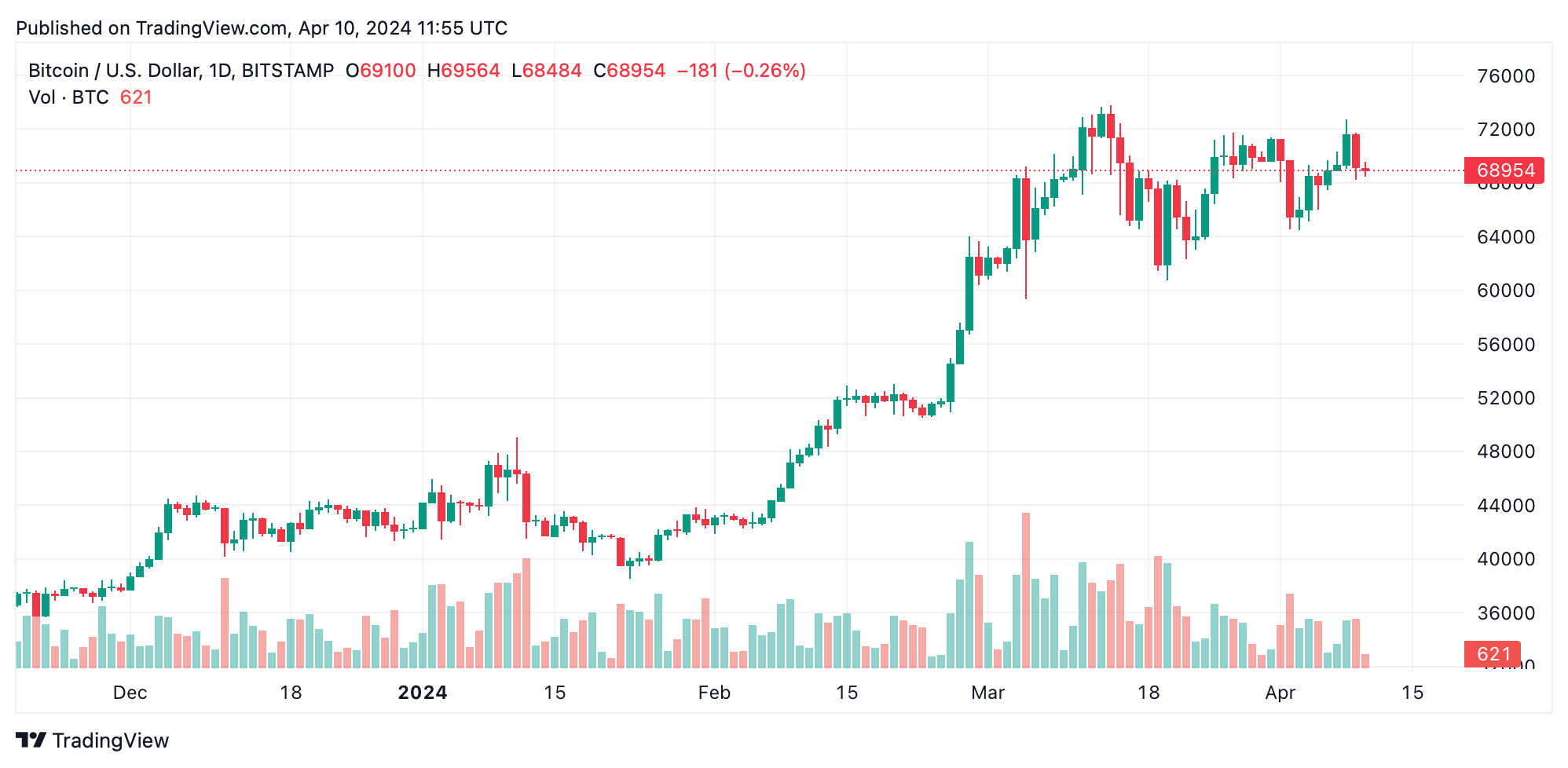 Die Preisbewegungen von Bitcoin am 10. April 2024 zeigten einen Tag signifikanter Volatilität, wobei der Wert der Kryptowährung zwischen 68.207 $ und 70.917 $ schwankte. Oszillatoren und gleitende Durchschnitte zeichnen ein komplexes Bild von Neutralität und vorsichtigen Verkaufssignalen, vor dem Hintergrund einer Marktkapitalisierung von 1,35 Billionen Dollar. Bitcoins Haltung der Neutralität und die Konsolidierungsphase gehen der Veröffentlichung des US-Verbraucherpreisindex (CPI) Berichts voraus.