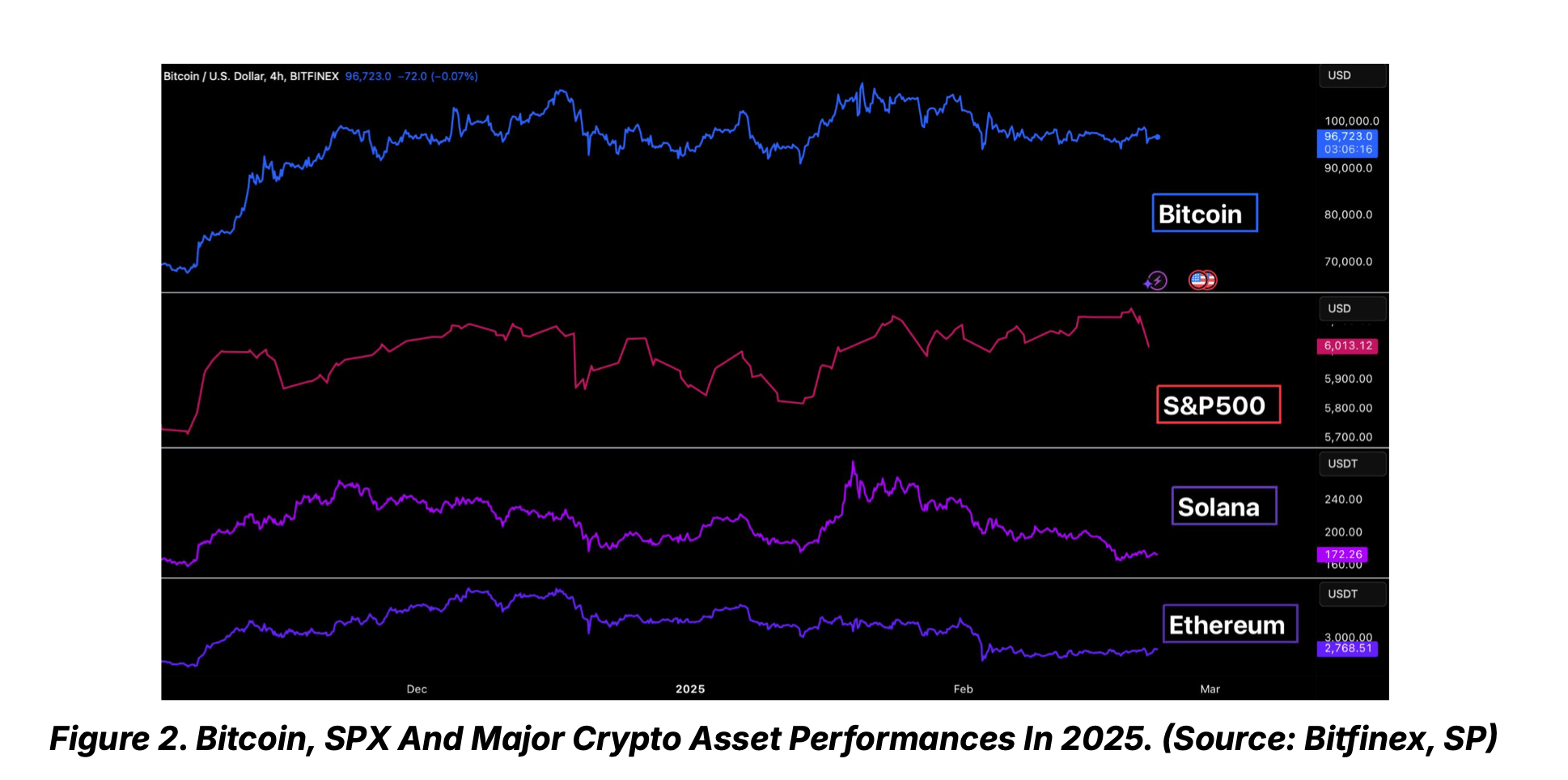 Bitfinex-Analysten stellten fest, dass die Volatilität von Bitcoin (BTC) am 21. Februar kurzzeitig anstieg, nachdem ein Hack der Krypto-Börse Bybit in Höhe von 1,5 Milliarden Dollar und Turbulenzen auf den Aktienmärkten zu einem intratägigen Rückgang von 4,7 % führten, bevor eine teilweise Erholung eintrat. Der Bericht hob eine breitere Korrektur des Kryptomarktes hervor, wobei Ethereum (ETH), Solana (SOL) und Meme Coins im Februar nach späten Rallyes 2024 zwischen 16,9 % und 37,4 % fielen.