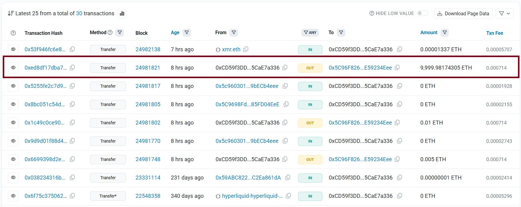 - Die Wallet 0xCD59 übertrug 10.000 ETH im Wert von 22,88 Millionen US-Dollar, nachdem sie 10,8 Jahre lang inaktiv gewesen war.