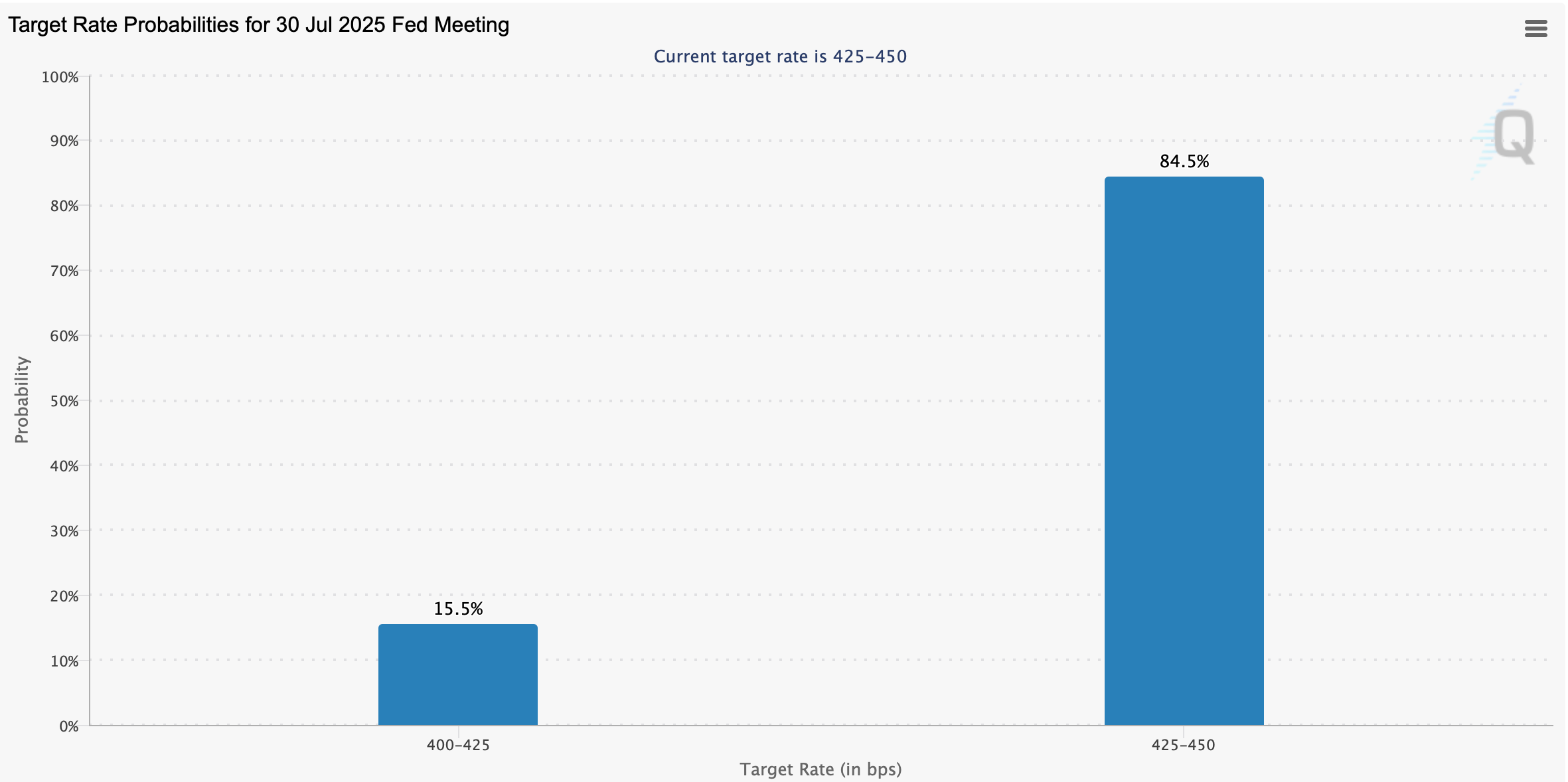Während sich die Welt auf Amerikas Engagement in dem eskalierenden Konflikt zwischen Israel und Iran fixiert, ist die Wahrscheinlichkeit für eine Zinssenkung um einen Viertelprozentpunkt durch die US-Notenbank im Juli um einen Prozentpunkt auf 15,5 % gestiegen.