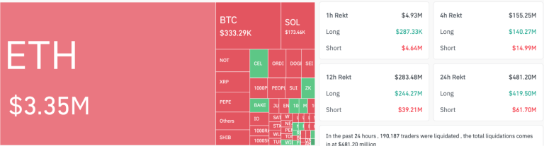 La capitalización de mercado de cripto está down un 2.5% hoy, con datos de Coinglass data reportando más de $400 millones en liquidaciones largas como resultado.
