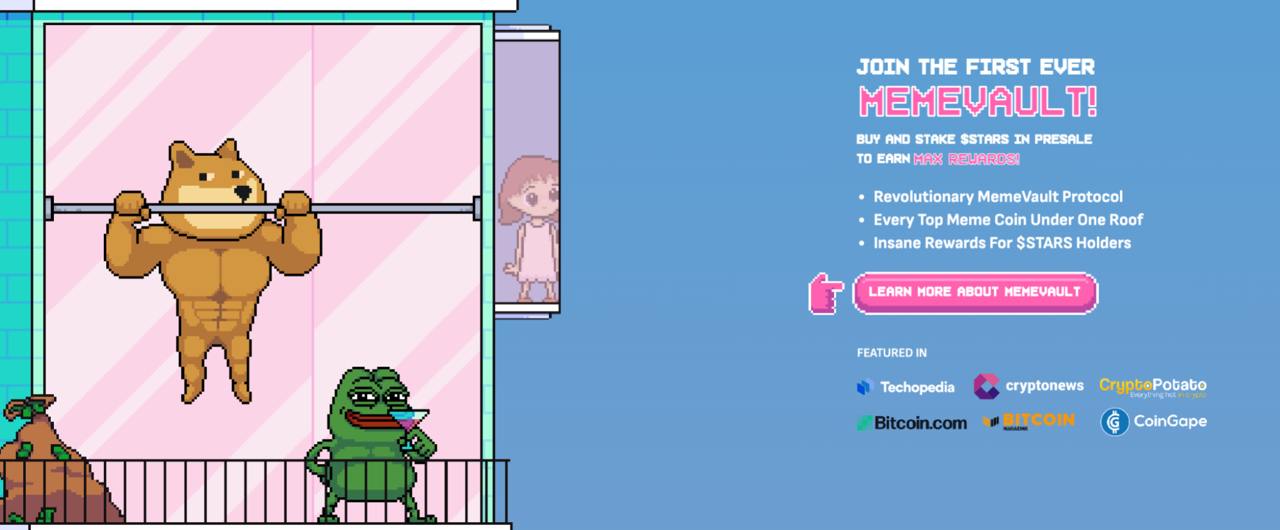 Mientras que monedas como PEPE y WIF se basan únicamente en el humor temático canino, STARS ofrece algo más sustancial a través de la función MemeVault.