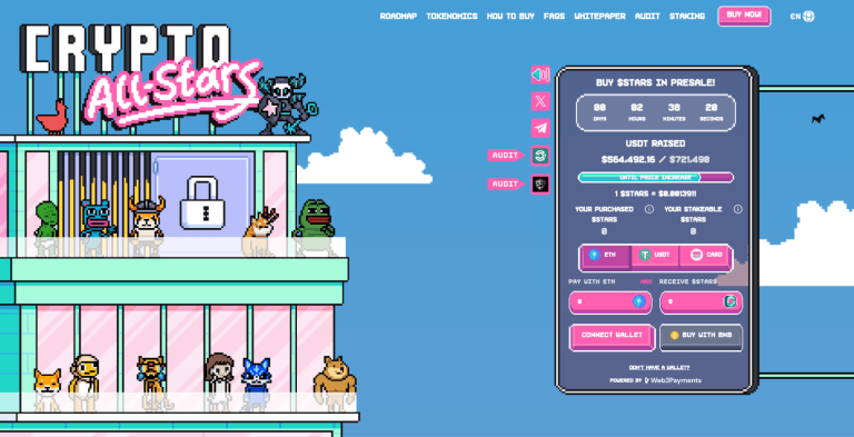 Nueva Moneda MemeFi para Observar: La Preventa de Crypto All-Stars Se Acerca a $600K mientras la Demanda de los Inversores Aumenta