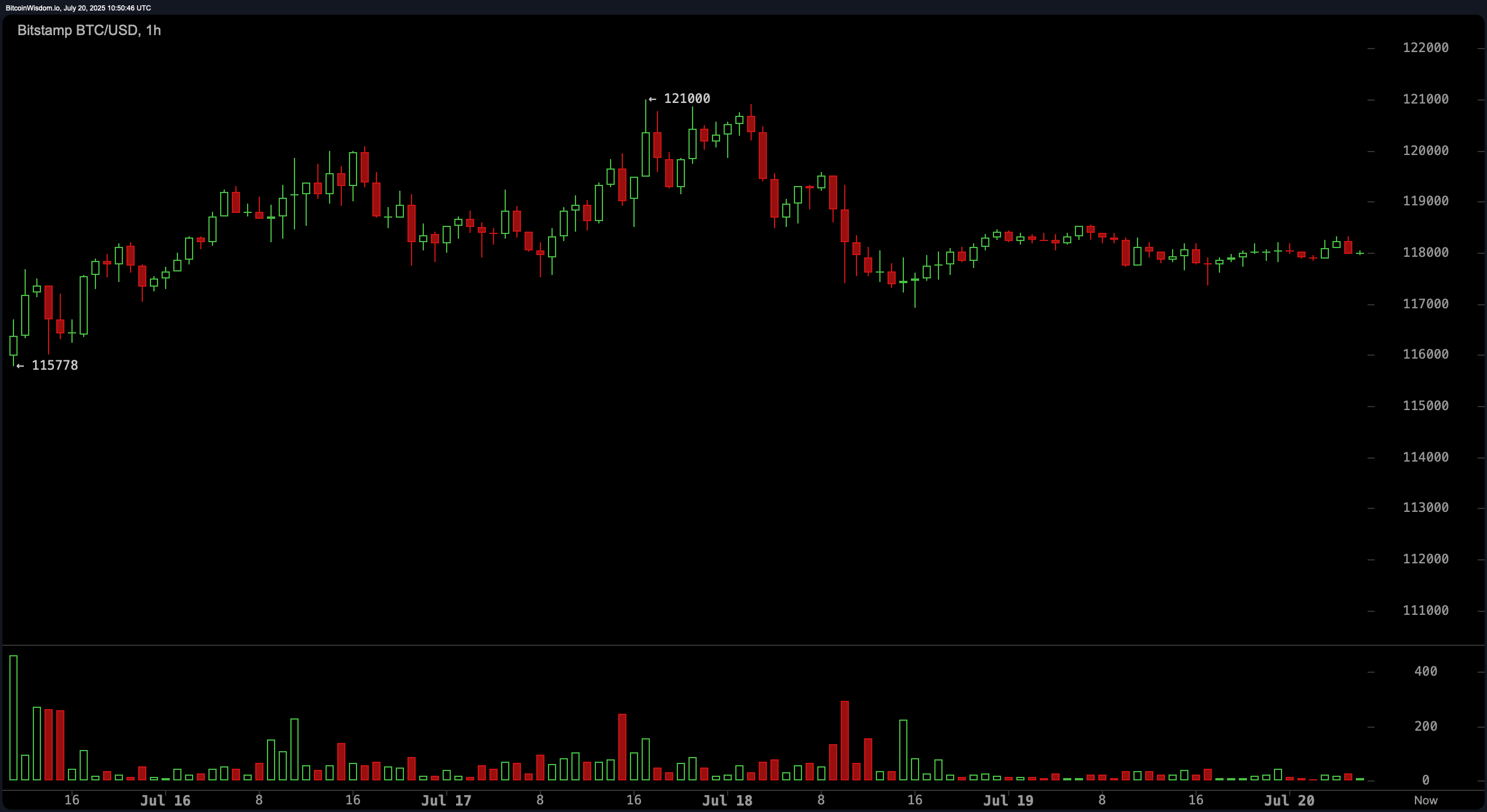 Vigilancia del Precio de Bitcoin: Consolidación de $117.5K a $118K Señala Tensión Antes de la Ruptura