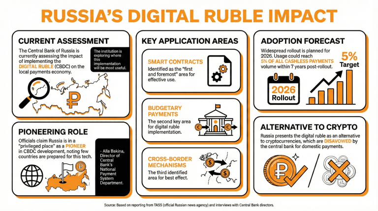 Venemaa Keskpank hindab juba, millist mõju avaldab digirubla, Venemaa keskpanga digivaluuta (CBDC), rakendamine kohalikule maksemajandusele.