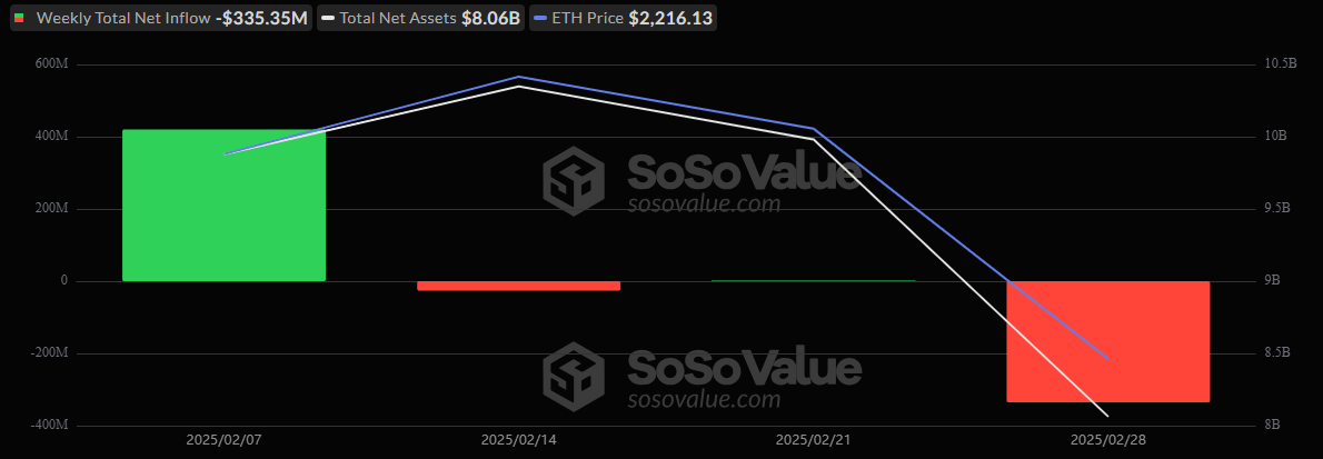 Ether ETFs were not spared, registering a net weekly outflow of $335.35 million. The most significant exodus occurred on Wednesday, Feb. 26, when bitcoin ETFs saw a record single-day withdrawal of $1 billion.