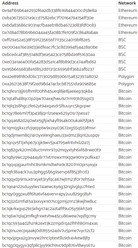 The FBI also provided Bitcoin, Ethereum, Binance Smart Chain (BSC), and Polygon wallet addresses to which DPRK cyber actors purportedly transferred the stolen cryptocurrencies from Stake.com.