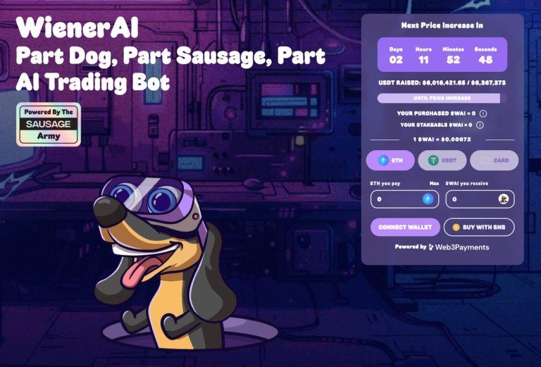 Cependant, une autre pièce-mème encore plus étrange appelée WienerAI (WAI) se porte également bien – et vient de dépasser le jalon des $6 millions lors de son évènement de prévente de jeton.