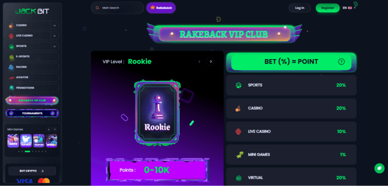 Le Programme de Rakeback VIP de JackBit est conçu pour récompenser généreusement les joueurs fidèles. Le programme assure des avantages précieux avec un rakeback instantané, sans exigences de mise et sans limite maximale. Les joueurs peuvent grimper les rangs de Rookie à Legend, chaque niveau débloquant de nouveaux privilèges et taux de rakeback améliorés. Le Programme de Rakeback VIP offre une expérience de jeu transparente et gratifiante où chaque pari compte.