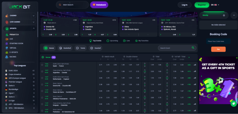 Le premier bookmaker de JackBit est un paradis pour les amateurs de sport. Il englobe un large éventail de marchés, incluant les paris en direct, les prémarchés, les e-sports, les sports virtuels et les courses. Avec stupéfiants 82 000 événements en direct et 75 000 événements en prémarché, les joueurs peuvent totalement s’immerger dans l’excitation de leurs sports favoris, qu’il s’agisse de football, de basketball, de tennis ou plus. La section complète d’E-Sports propose plus de 500 jeux, 40 tournois, 5 000 événements et des titres populaires tels que Dota, LoL, COD, CS: GO et Overwatch.