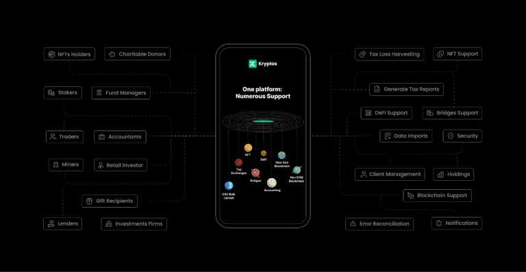 Ne laissez pas la gestion crypto vous empêcher de profiter des avantages de ce marché en plein essor. Anticipez les échéances fiscales au Royaume-Uni et aux États-Unis, simplifiez la conformité et exploitez le pouvoir de l’innovation avec Kryptos—la solution de finance crypto tout-en-un pour chaque détenteur de crypto.