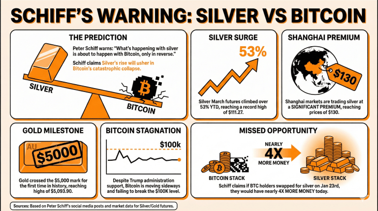Schiff affirme que la montée de l’argent entraînera le déclin du bitcoin, suggérant un changement significatif du marché. -