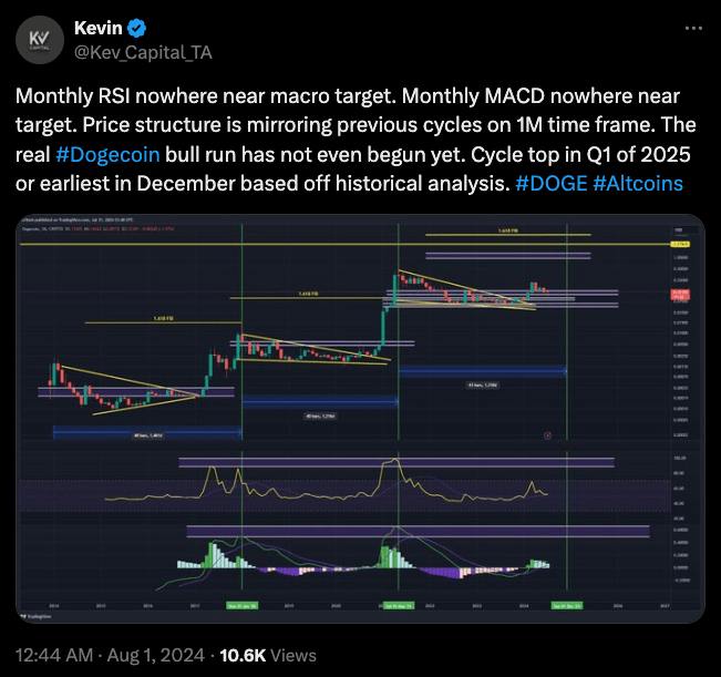 L’analyste crypto @kev_capital_ta, qui a près de 10 000 abonnés, a lâché une bombe sur Dogecoin plus tôt ce mois-ci.