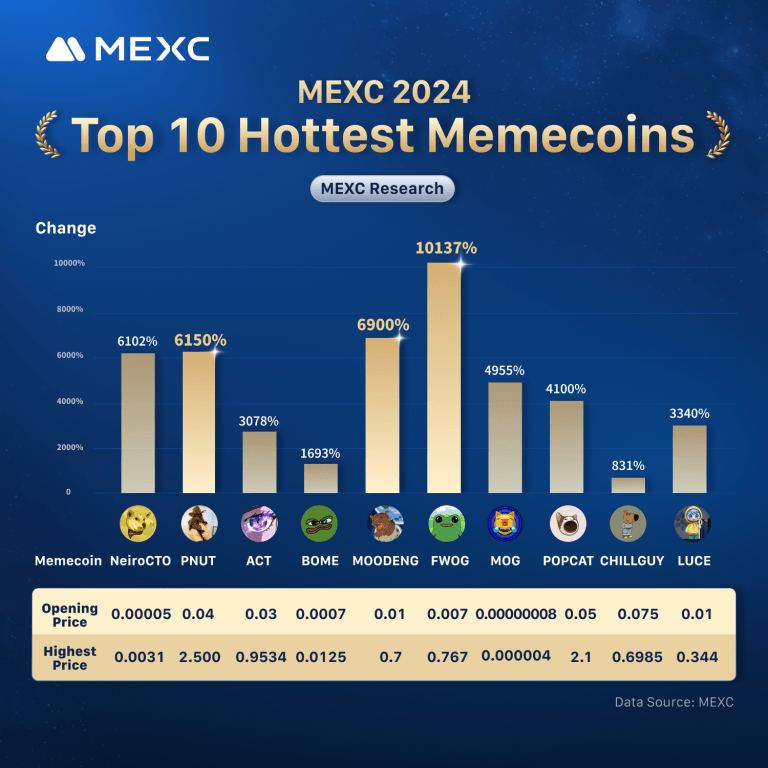 En 2024, le marché des memecoins a connu une croissance significative, avec une variété de projets émergents attirant une attention généralisée. En tant que plateforme d’échange de crypto de premier plan, MEXC a continué de fournir aux utilisateurs du monde entier un accès sécurisé et facile au trading d’actifs numériques. Cette année, MEXC est non seulement devenue la plateforme de choix pour de nombreux projets de memecoins, mais a également été témoin de la montée rapide de nombreux projets.