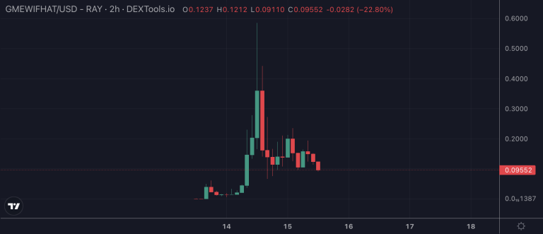 While it has pulled back around 40% since that peak, GMEWIFHAT still boasts a $1.4 million market cap and has handled a mind-boggling $5.4 million in trading volume over the past day.