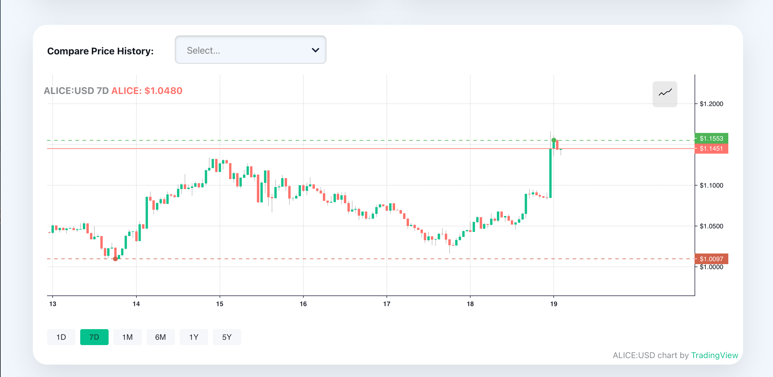 - आपूर्ति: 100,000,000 टोकनों की एक निश्चित आपूर्ति होती है। खिलाड़ी $ALICE प्राप्त कर सकते हैं, इसे खरीदकर, इसे गेम के इनाम के रूप में कमाकर, या वस्त्रों का लाभ के लिए व्यापार करके।