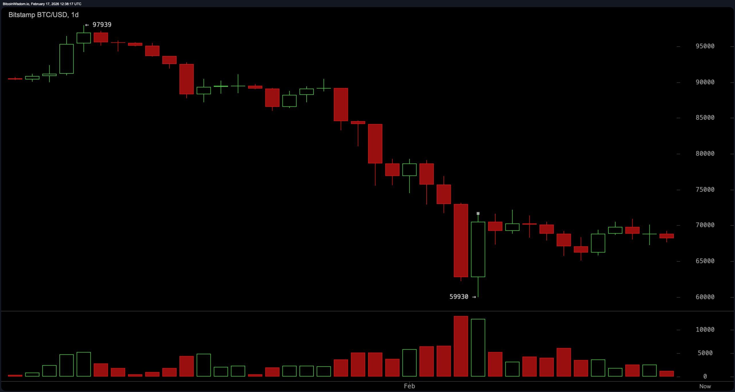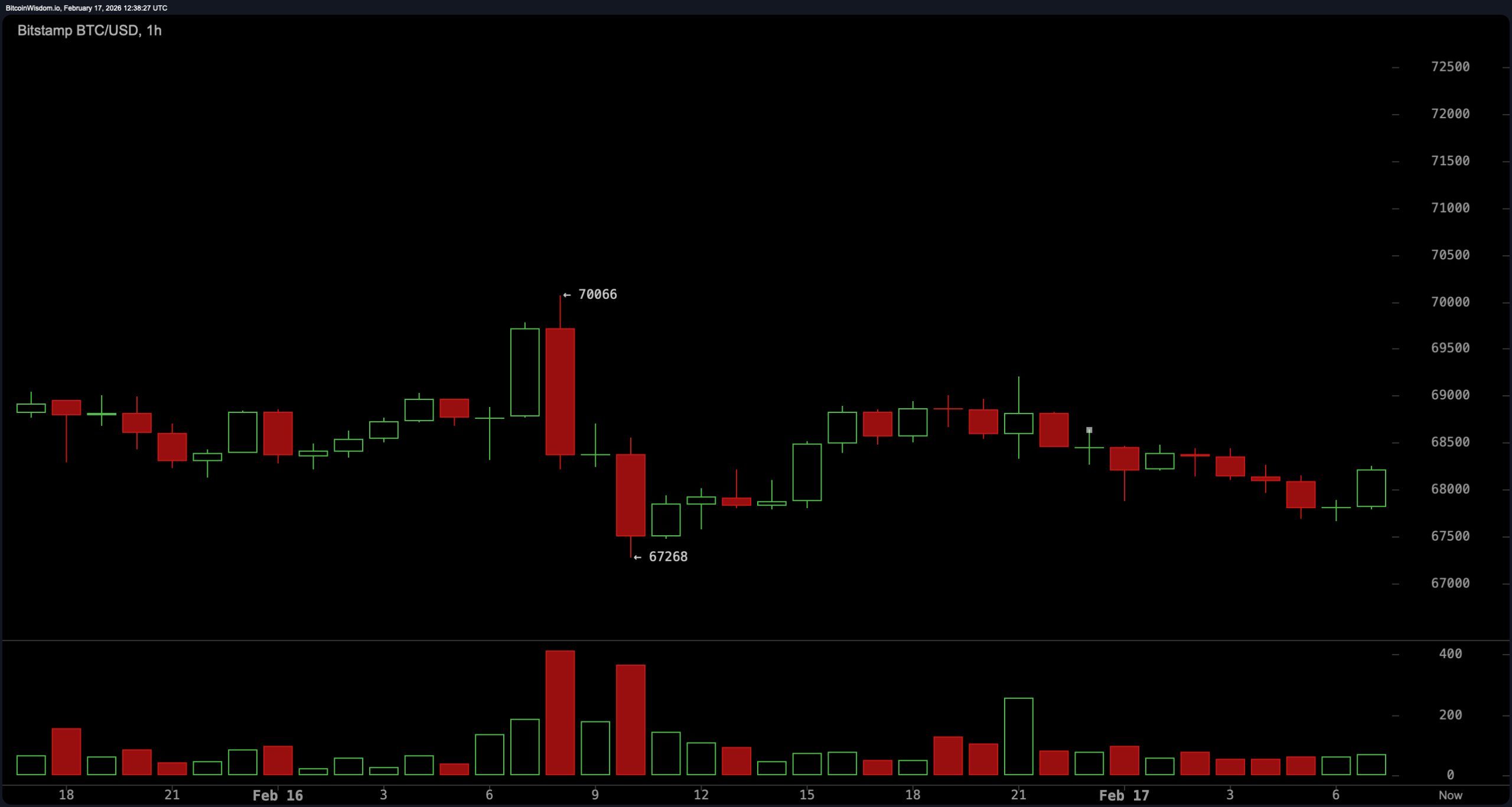 बिटकॉइन 17 फरवरी, 2026 को फिर से संपीड़न मोड में है, और $67,381 और $69,999 के बीच इंट्राडे रेंज की जांच करने के बाद $68,021 पर कारोबार कर रहा है। 24 घंटे के वॉल्यूम में $36.58 बिलियन और $1.37 ट्रिलियन के मार्केट कैप के साथ, यह कोई सुस्त टेप नहीं है — यह एक ऐसा बाजार है जो रुक रहा है, पुनः समायोजित हो रहा है, और व्यापारियों को अति-प्रतिक्रिया करने की चुनौती दे रहा है।