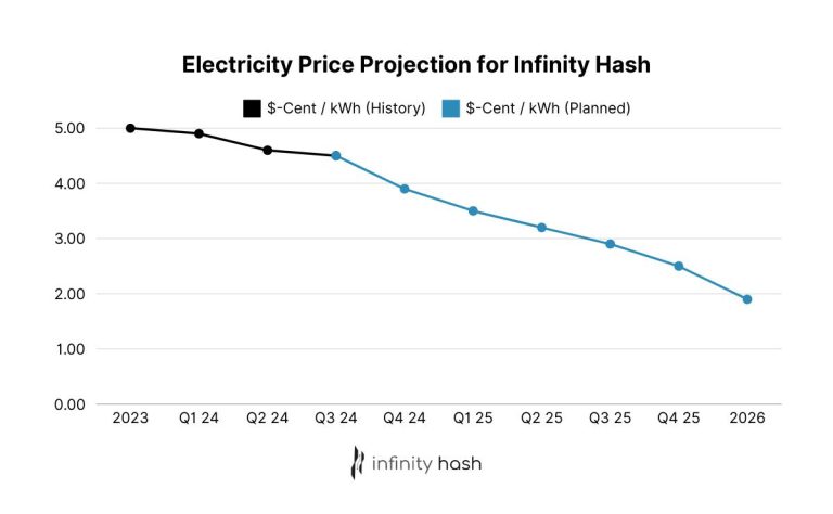 With the addition of these locations, the average electricity cost of the entire mining operation will go down with time:
