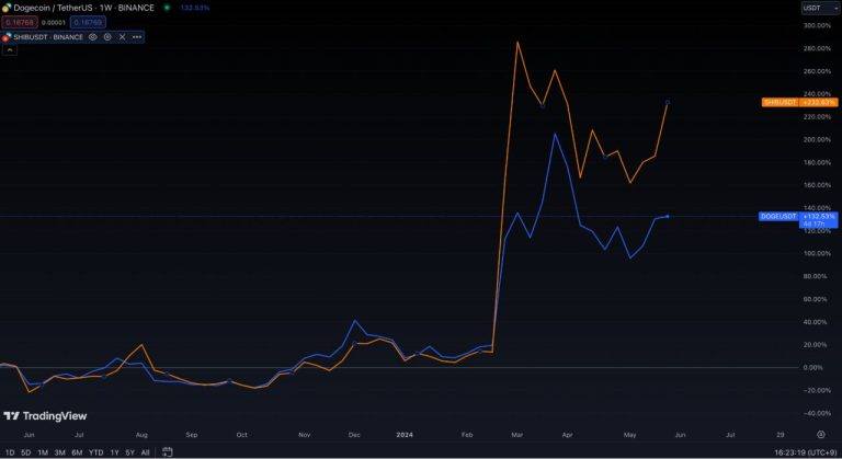 Meanwhile, Shiba Inu has outperformed Dogecoin this year, up 237%, while Dogecoin is up 134%.