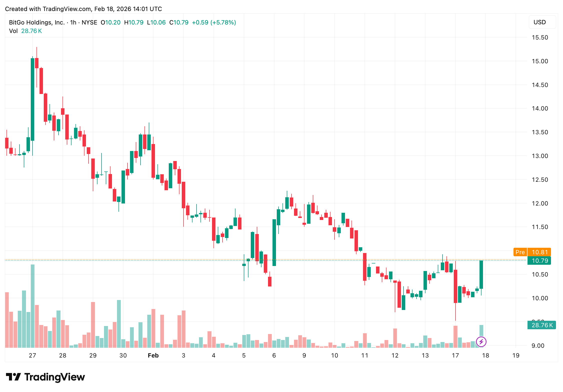 In una nota del 17 febbraio, gli analisti di Mizuho Dan Dolev e Alexander Jenkins hanno avviato la copertura di Bitgo Holdings Inc. (NYSE: BTGO) con un obiettivo che implica un rialzo del 50-60% circa rispetto alla recente chiusura del titolo a circa 10,87 dollari. La previsione arriva mentre le azioni rimangono sotto pressione dopo il debutto in borsa della società, con un calo di circa il 50% in termini di perdite percentuali storiche registrate da tradingview.com.