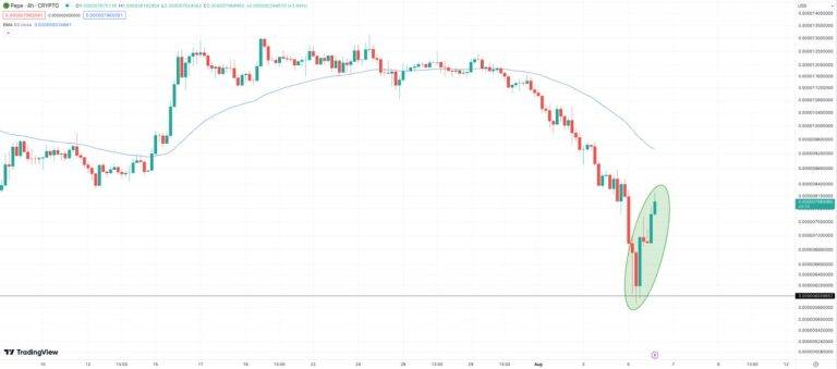 La risalita è iniziata quando PEPE ha rimbalzato dal livello di supporto di $0,0000060.