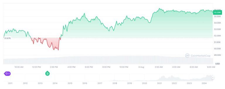 Dopo aver toccato brevemente $50,000 ieri, BTC ha avuto una ripresa, ora posizionandosi a $55,600.