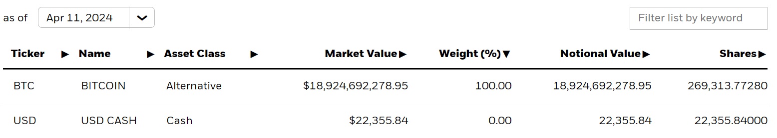 Il fondo comune di investimento in bitcoin spot dell’asset manager, l’Ishares Bitcoin Trust (IBIT), ha mantenuto una posizione dominante nel mercato degli ETF bitcoin spot negli Stati Uniti. Al 11 aprile, le partecipazioni in bitcoin di IBIT ammontavano a circa 269.314 BTC, con un valore nominale di oltre 18,9 miliardi di dollari.