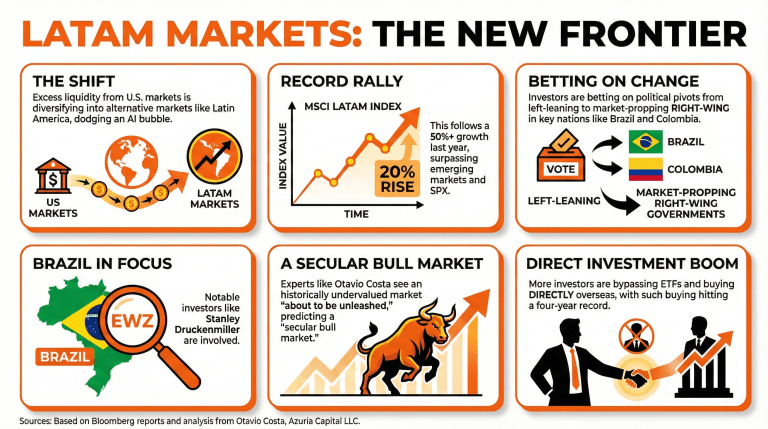 Gli investitori cercano di diversificare lontano dall'eccesso di liquidità dei mercati statunitensi, il che porta a un notevole interesse per i titoli azionari latinoamericani. -